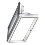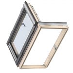 Finestra per tetti a falda in legno naturale con apertura a bilico manuale